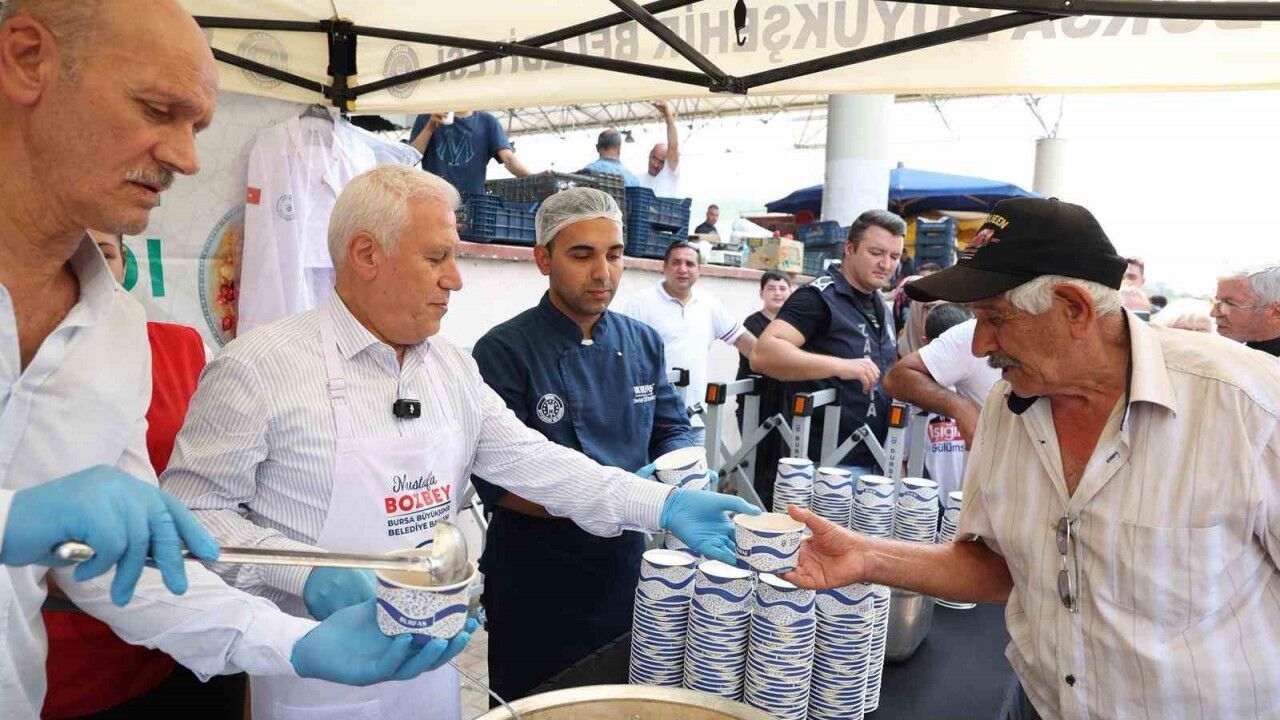 Bursa Büyükşehir Belediyesi, Muharrem ayı dolayısıyla kentin farklı noktalarında vatandaşlara aşure ikramında bulunuyor. Gürsu ilçesinde bulunan Kapalı Pazar Yeri’nde Bursalılara aşure ikram eden Başkan Mustafa Bozbey, vatandaşların Muharrem ayını tebrik etti.