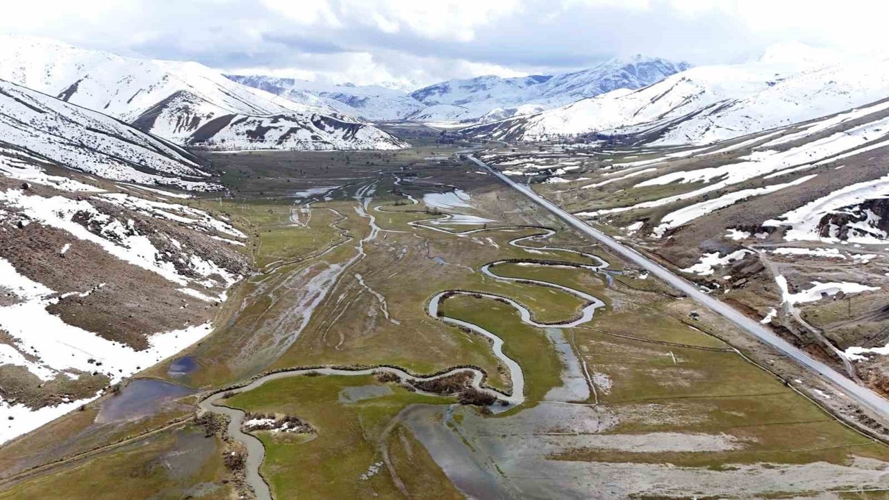 Bitlis'in Tatvan ile Hizan ilçeleri arasında bulunan Güzeldere Vadisi'nde uzayıp giden Güzeldere menderesleri havadan görüntülendi.