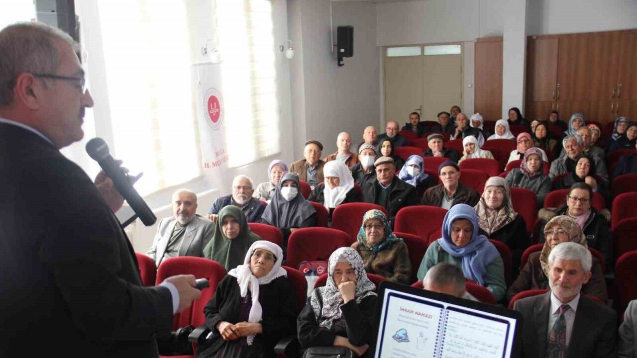 Orhaniye Camii İmam Hatibi ve hac kafile görevlisi Süleyman Eski’nin Kur’an-ı Kerim tilavetiyle başlayan seminerde, Müftü Yaşar Çapçı, ‘Haccın Hikmeti ve Sembolleri’, ‘Uygulamalı Hac Eğitimi’ ile ‘Hac ve Umre Menasiki’ konularında sunum yaptı.