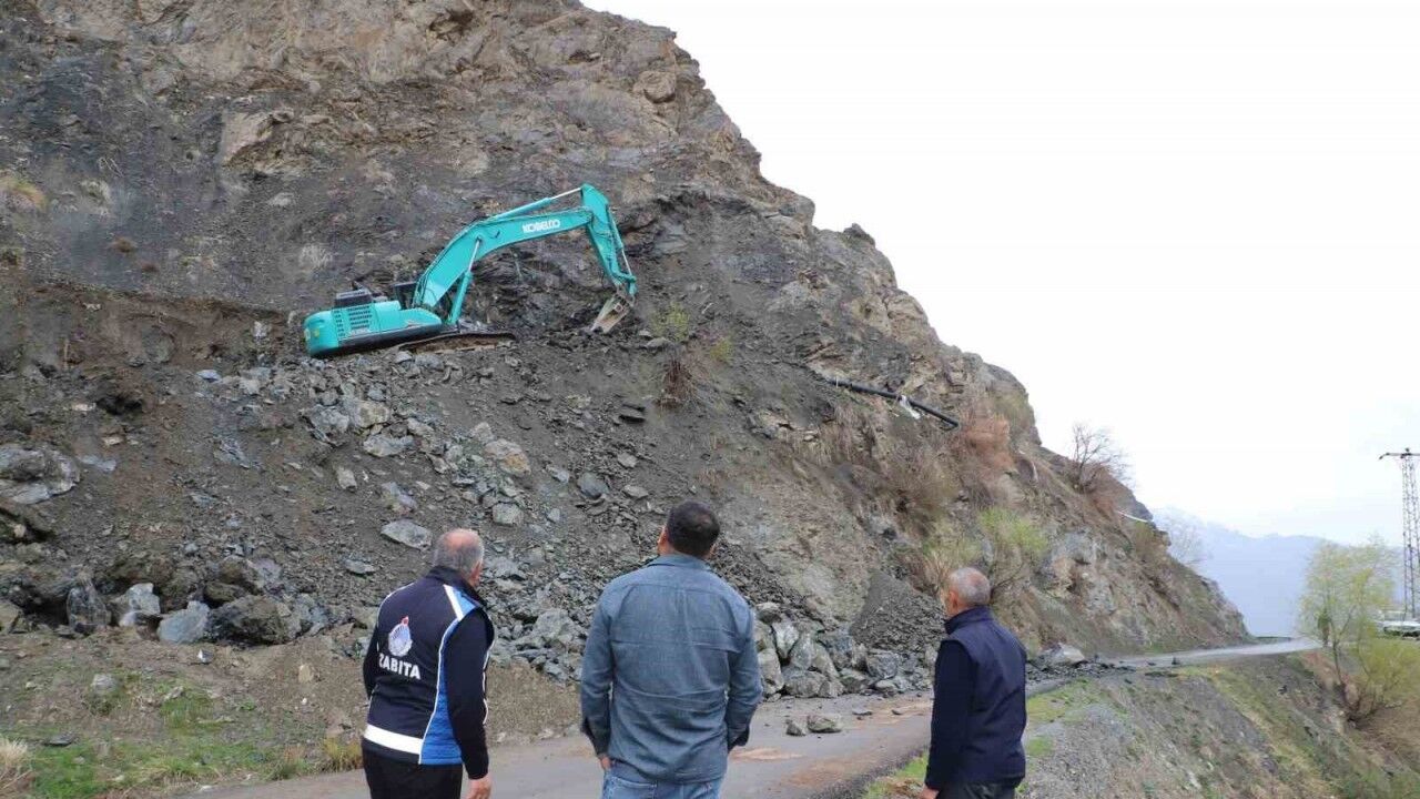 Hakkari’de etkili olan yağışların ardından yola düşen kayalar nedeniyle tehlike oluşturan güzergah için ekipler harekete geçti.