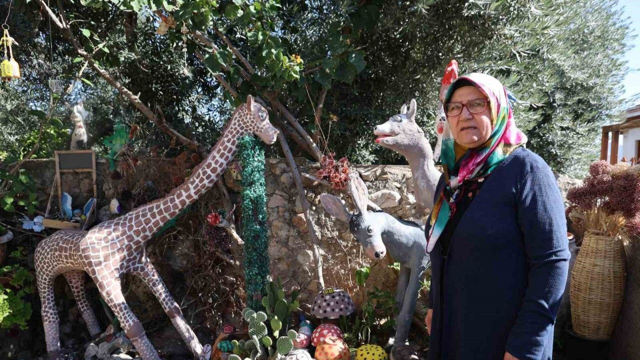 Kozan Kalesi eteklerindeki evinin çevresini masal kahramanı Bremen Mızıkacıları, aslan ve leylek figürleriyle renklendiren Kuzu, doğada bulduğu ağaç dallarını, sandıklarda saklı duran etamin ve iğne oyalarını atık malzemelerle bir araya getirerek evinin bahçesini adeta açık hava sanat alanına dönüştürdü. Evli, dört çocuk ve üç torun sahibi 65 yaşındaki Nadire Kuzu, iki yıl içinde atık hortumları, mangal tellerini, pencere korkuluklarını ve sandıklarda saklı duran el işlerini ağaç ve plastik atıklarla buluşturarak masal kahramanlarından, ev aksesuarlarına kadar birçok eser ortaya çıkardı.