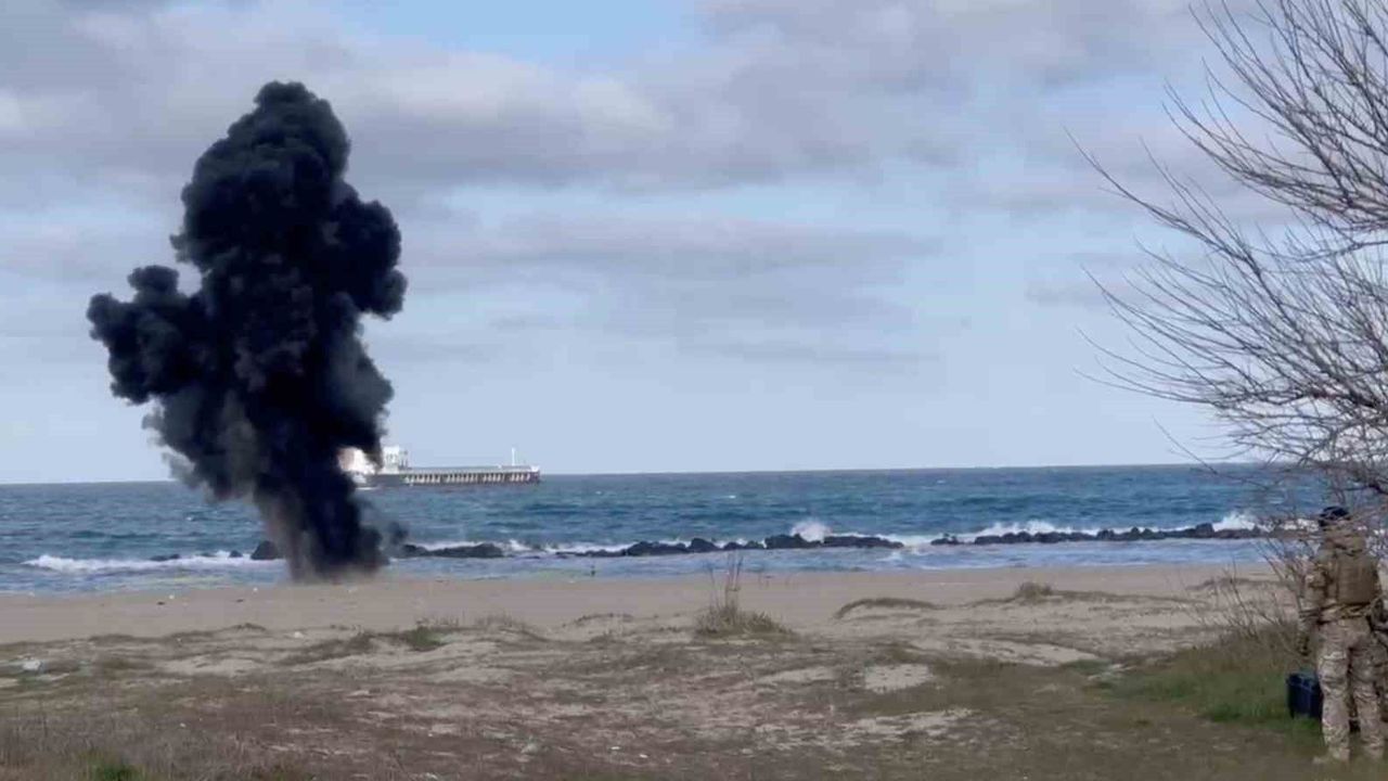 Sakarya'nın Karasu ilçesi halk plajında parçalanmış halde bulunan ve insansız hava aracı (İHA) olduğu değerlendirilen cisim, S.A.S. timleri tarafından fünye düzeneğiyle imha edildi.