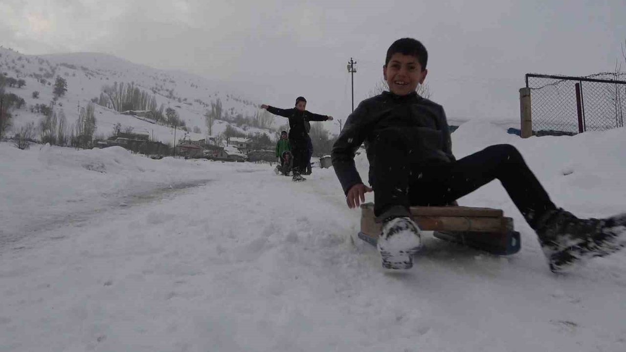 Alperen Coşkun ise tatilde köye geldiğini söyleyerek, 'Okul zamanı da okulda kayıyoruz. Çok eğlenceli. El yapımı demir patenler yaptık. Bazen yollar kardan temizlenince üzülüyoruz ama başka bir yerde kendimize kayacak alan buluyoruz. Burası Muş, yolları yokuşlu, her zaman kayacak yer bulabiliyoruz' ifadelerini kullandı.