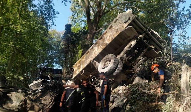 Damperi açık hafriyat kamyonu trafik ışıklarına çarptı