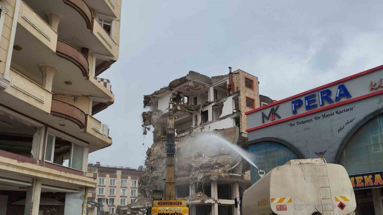 İlçede depremlerde yıkılan ya da ağır hasarlı olduğu için yıkım kararı alınan binalarda enkaz kaldırma çalışmaları ekiplerce gerçekleştiriliyor. Yıkım işleminin yapılacağı alanlarda herhangi bir olumsuzluk yaşanmaması için güvenlik önlemi alan ekipler, yıkımın ardından çıkan molozları kamyonlarla enkaz döküm alanlarına götürüyor.