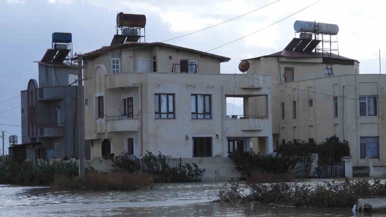 Hatay’ın Samandağ ilçesinde geceden bu yana etkili olan şiddetli rüzgar ve sağanak nedeniyle bazı evler su altında kaldı.