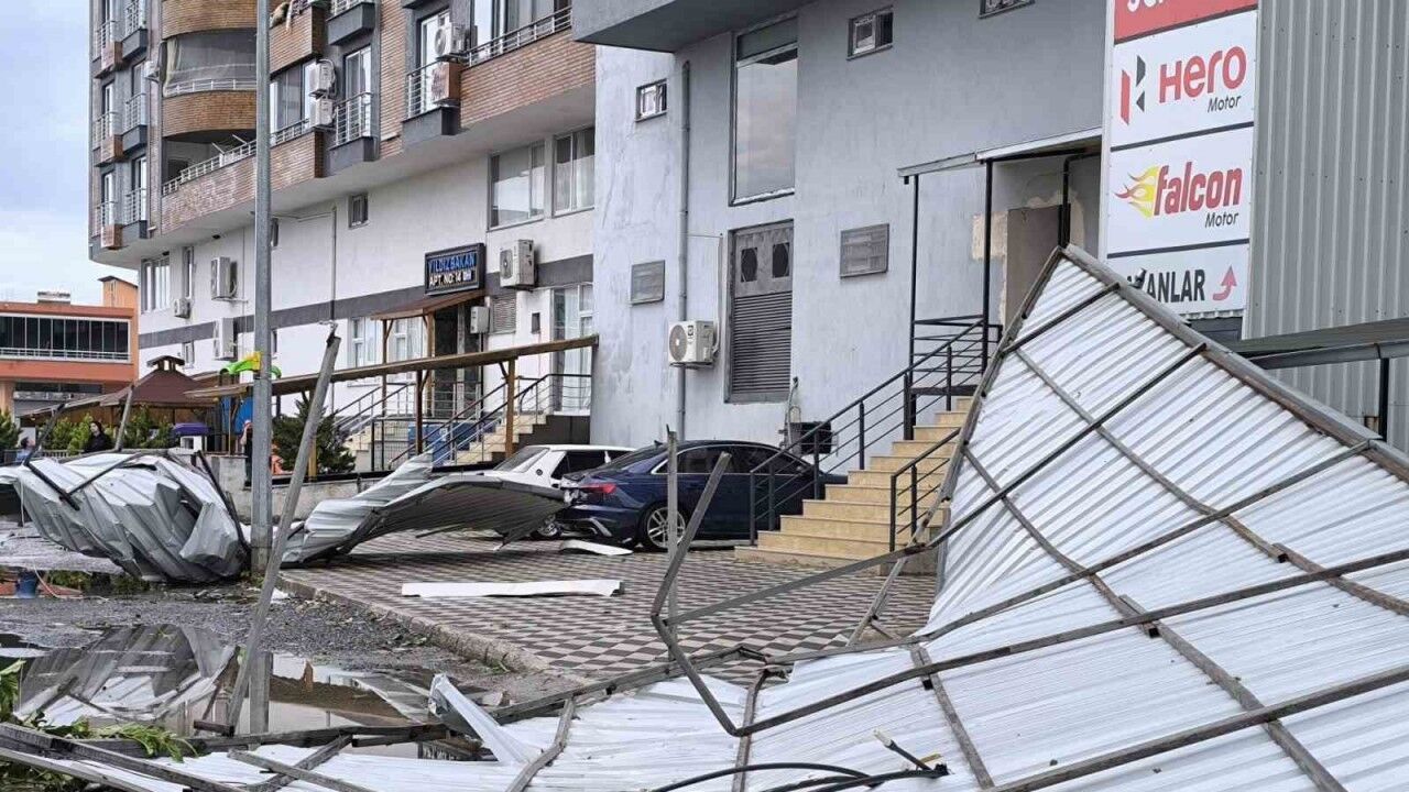 Fırtınayla birlikte 2 aracın zarar gördüğünü belirten Murat Alkan, "Saat 12.00 civarında yağışlı havayla birlikte etkili oldu. Fırtınayla birlikte binaların çatısı uçtu ve araçlar zarar gördü. Şükürler olsun canda bir şey yok ama 2 araçta hasar var" dedi.