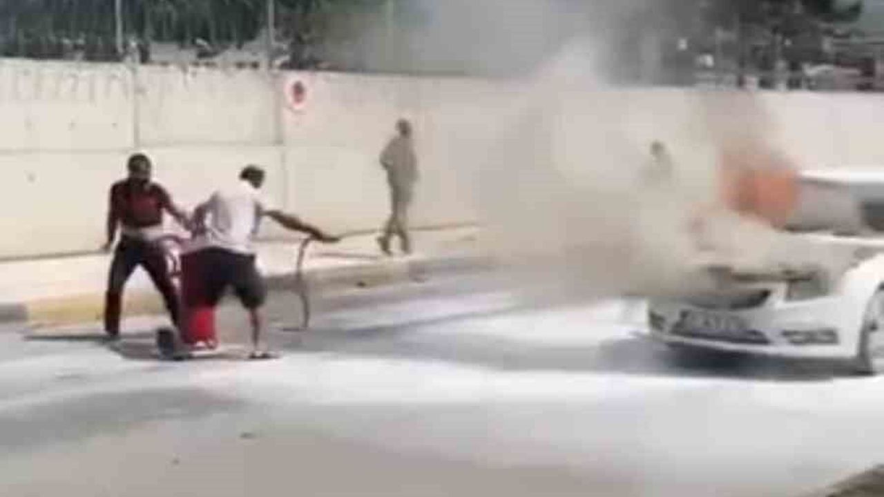 Hatay’ın İskenderun ilçesinde seyir halindeyken alev alan otomobilde yangın çıktı. Çevredeki vatandaşların müdahalesiyle alevler kısa sürede kontrol altına alındı.
