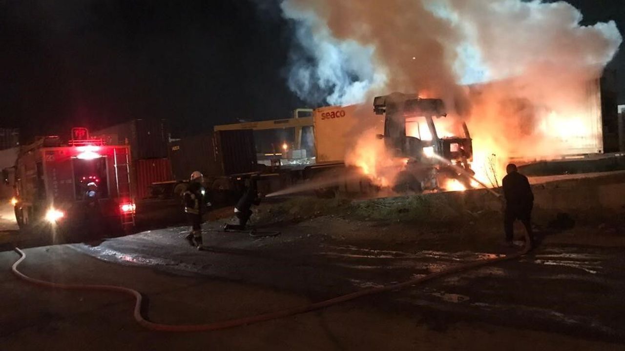 Hatay’ın İskenderun ilçesinde seyir halindeki tırda yangın çıktı.