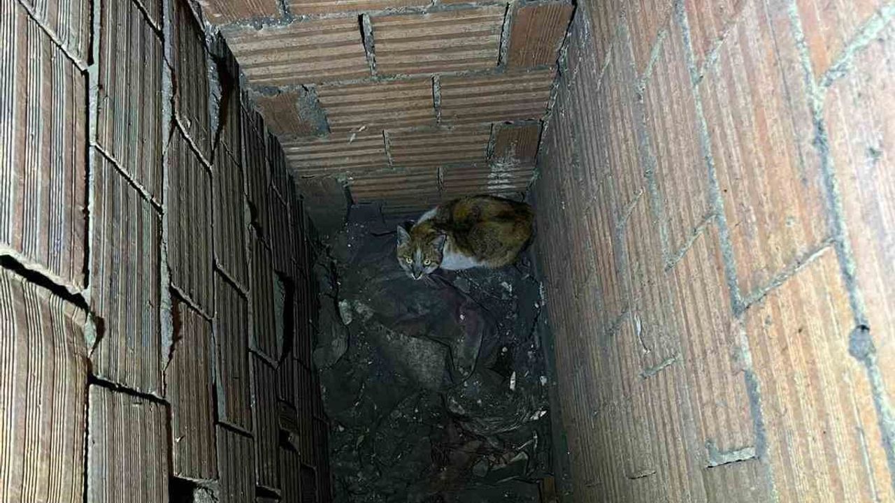 Erzincan'da bir apartmanın havalandırma boşluğuna düşen kedi, itfaiye ekiplerinin müdahalesiyle kurtarıldı.
