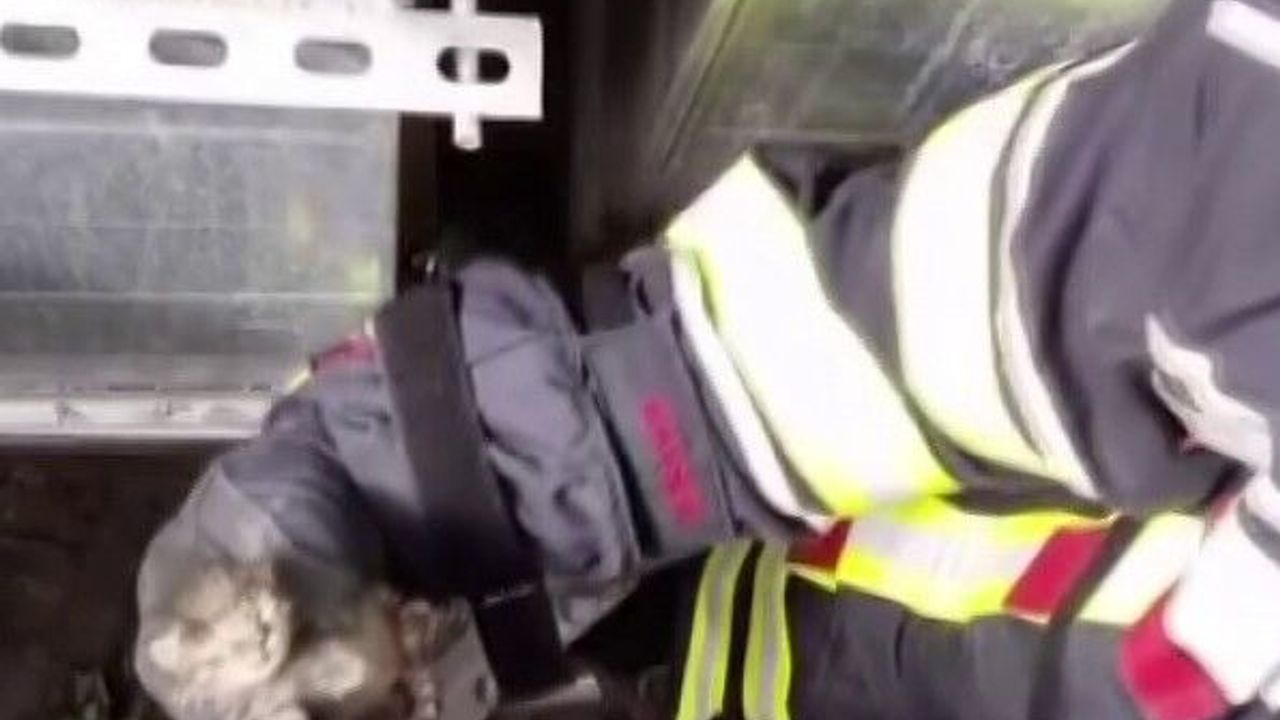 Kayseri’nin Kocasinan ilçesinde havalandırma boşluğuna düşen yavru kedi, itfaiye ekiplerince kurtarıldı.