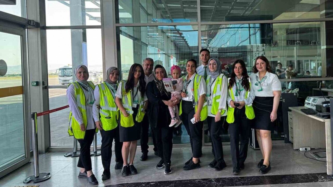 Elazığ’da yaşayan ve kanser hastası olan 1,5 yaşındaki Cennet Aydoğdu’nun, tedavisi Hacettepe Üniversite Hastanesi’nde sürüyor. Aile tedavi için sürekli Ankara’ya giderken Elazığ Havalimanı personelleri, Cennet ile farklı bir bağ kurdu. Bu çerçevede personeller, Ankara’ya gitmek için havalimanına gelen Cennet’e doğum günü sürprizi yaptı. Cennet annesiyle birlikte beklediği sırada çalışanlar elleriyle pasta ile geldi. Büyük bir mutluluk yaşayan Cennet, annesiyle birlikte pastanın mumlarını üfledi. Aynı zamanda doğum günü hediyesi de veren havalimanı personelleri son olarak Cennet ile hatıra fotoğrafı çekindi. O anlar izleyenlerin içini ısıttı.