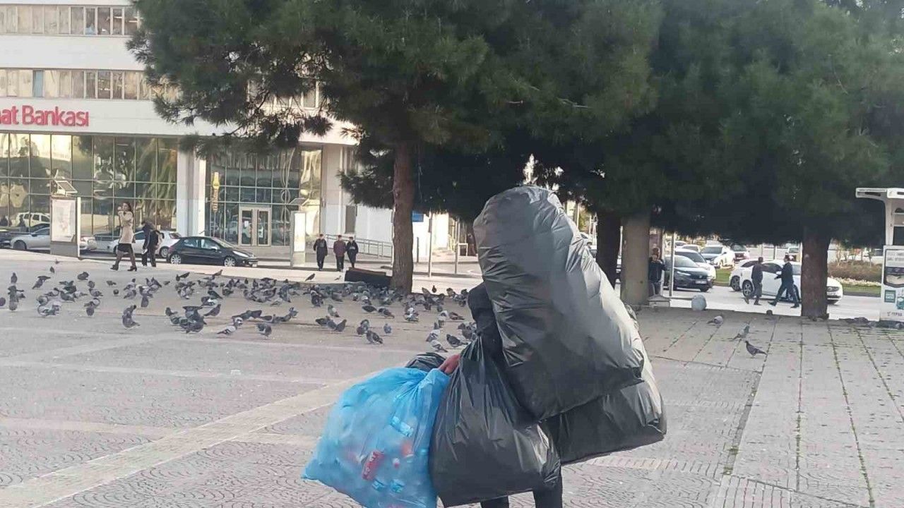 Şehrin işlek noktalarında zaman zaman karşılaşılan bu manzara, geri dönüşüm zincirinin görünmez emekçilerini hatırlatıyor. Kimi zaman soğukla, kimi zaman yorgunlukla mücadele eden bu insanlar, topladıkları her pet şişeyle hem geçimlerini sağlamaya çalışıyor hem de kentin temiz kalmasına katkı sunuyor.