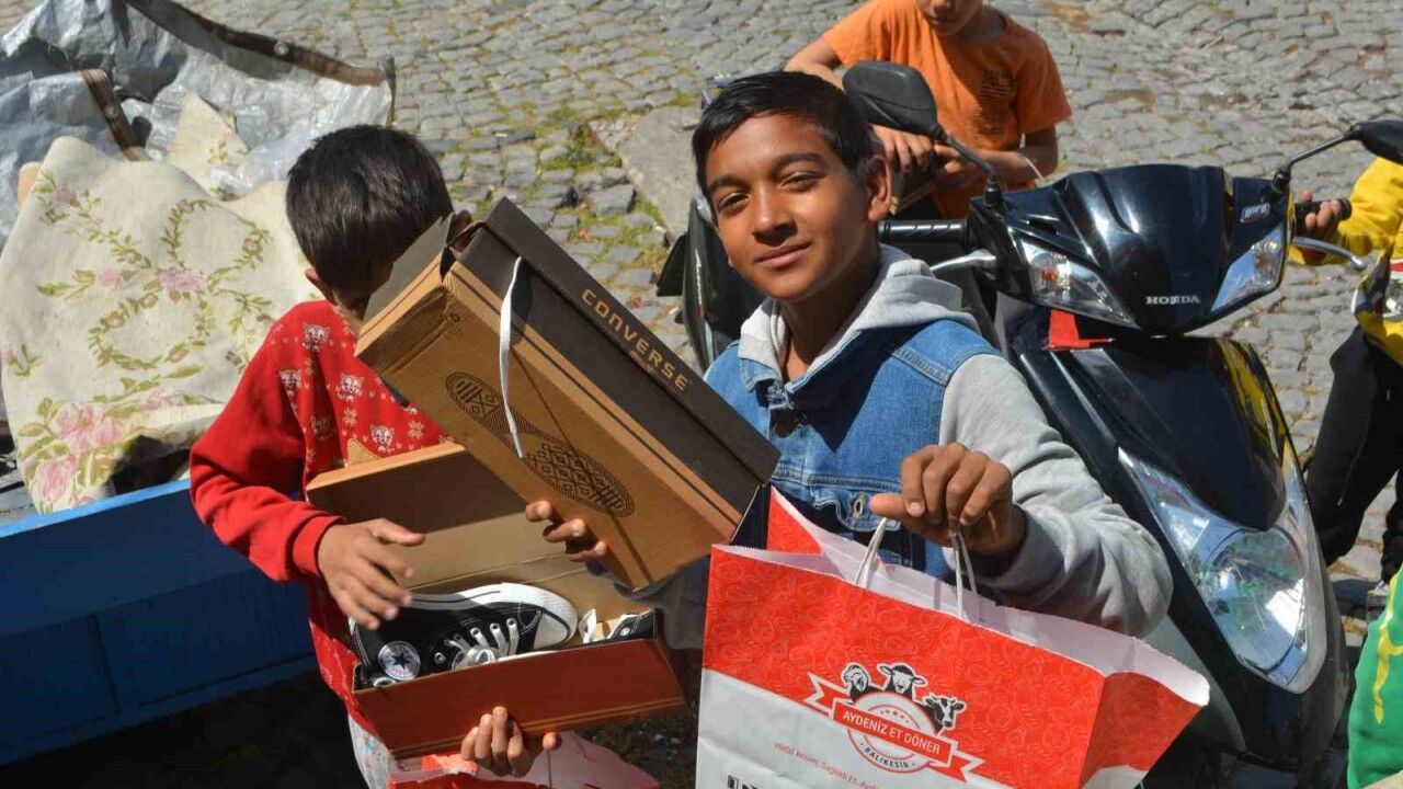 Ayvalık’ta hayırseverliğiyle tanınan iş insanı Özlem Yalçın, roman vatandaşların yoğun yaşadığı Hamdibey Mahallesi’nde yoksul ailelerin çocuklarına bayramlık kıyafet ve ayakkabı dağıtımında bulundu.