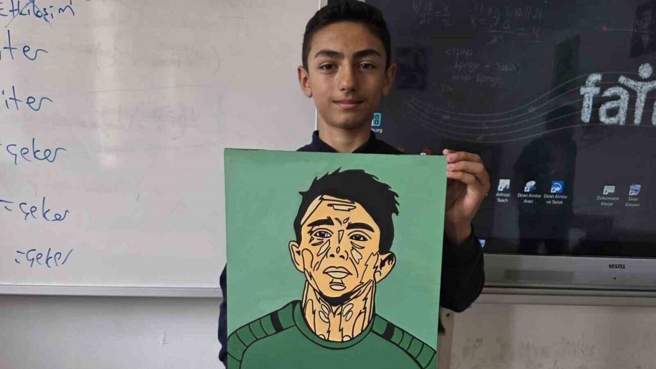 Ortaokul öğrencisi Muhammed Ünal, Fernando Muslera’yı resmetti, hayali ise resmini elden teslim etmek.