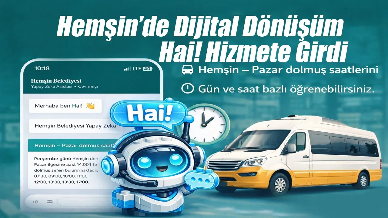 Hemşin Belediyesi Yapay Zekâ Asistanı Hai!, son güncellemeyle birlikte Hemşin – Pazar dolmuş saatlerini de kapsama aldı.