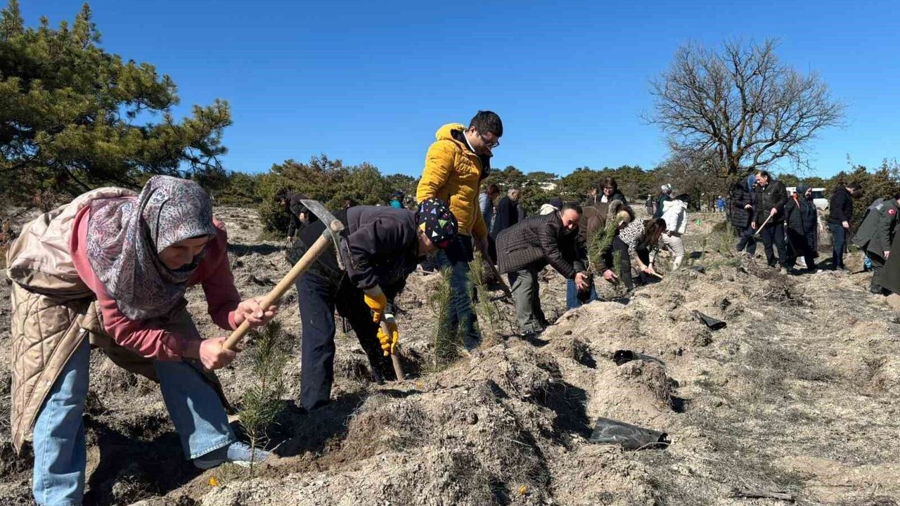 Eskişehir İl Sağlık Müdürlüğü tarafından '14 Mart Tıbbiyeliler Ormanı' için düzenlenen etkinlikte, sağlık çalışanları ve katılımcılar fidanları toprakla buluşturdu.