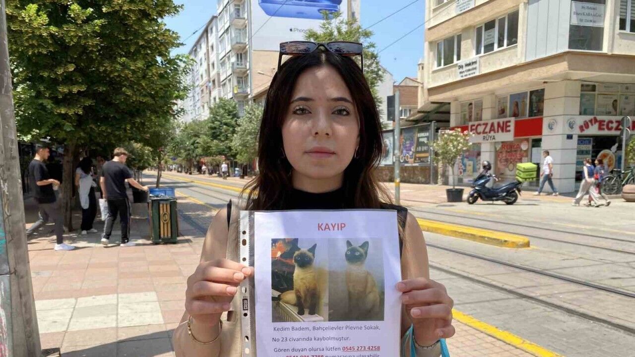 Eskişehir’de arefe gününde siyam cinsi kedisi kaybolan Burcu Dincay, herkes Kurban Bayramı’nı kutlarken sokak sokak gezip kedisini bulmaya çalıştı.