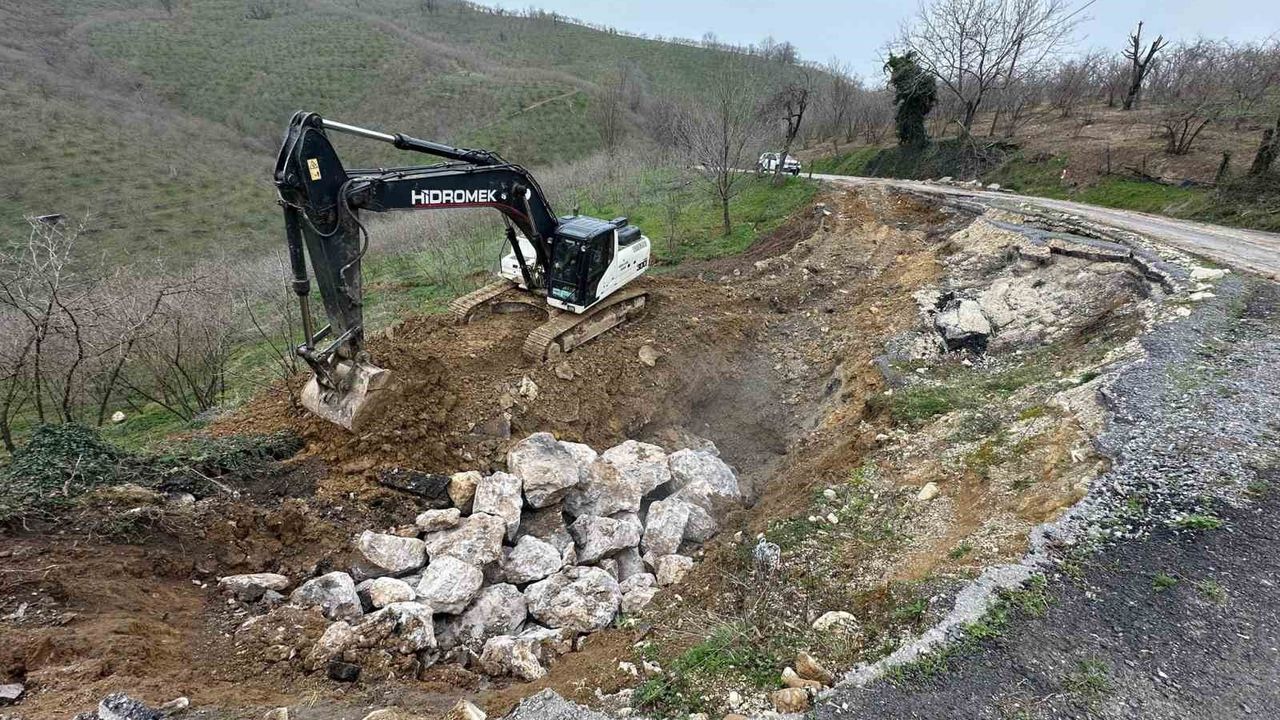 DÜZCE (İHA) - Düzce İl Özel İdaresi Yol ve Ulaşım Hizmetleri Müdürlüğü ile Akçakoca İlçe Özel İdare Müdürlüğü ekipleri tarafından, Koçar köyünde meydana gelen heyelan sonrası bölgede gerekli taş tahkimatı ve dolgu çalışmalarına başlandı.