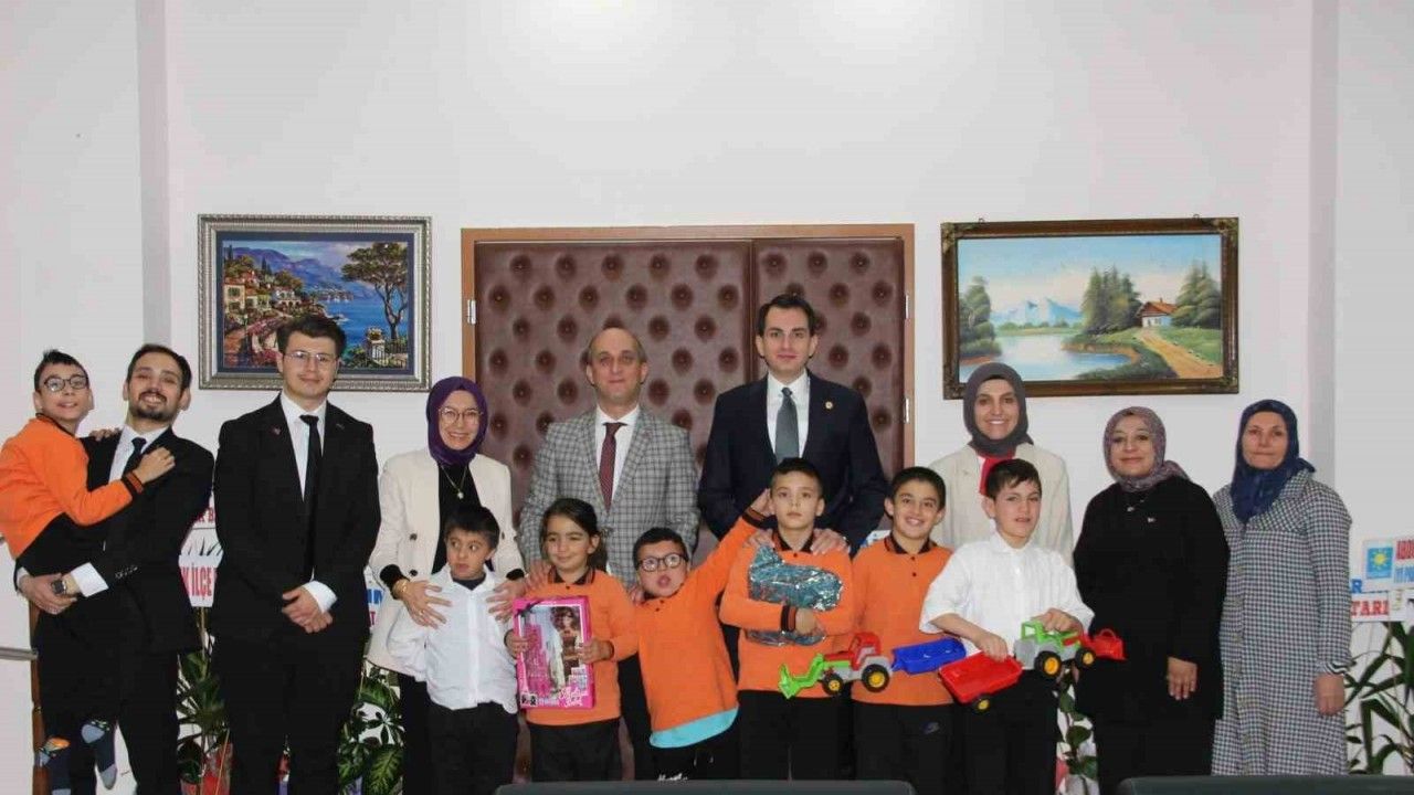 Özel öğrencilerle tek tek ilgilenen Kaymakam Erkan Atam, öğrenciler ile sohbet ederek kendilerine bu nazik ziyaretleri için teşekkür edip hediye taktim etti. Kaymakam Atam, özel öğrencileri makam koltuğuna oturtarak onlarla fotoğraf çektirdi.