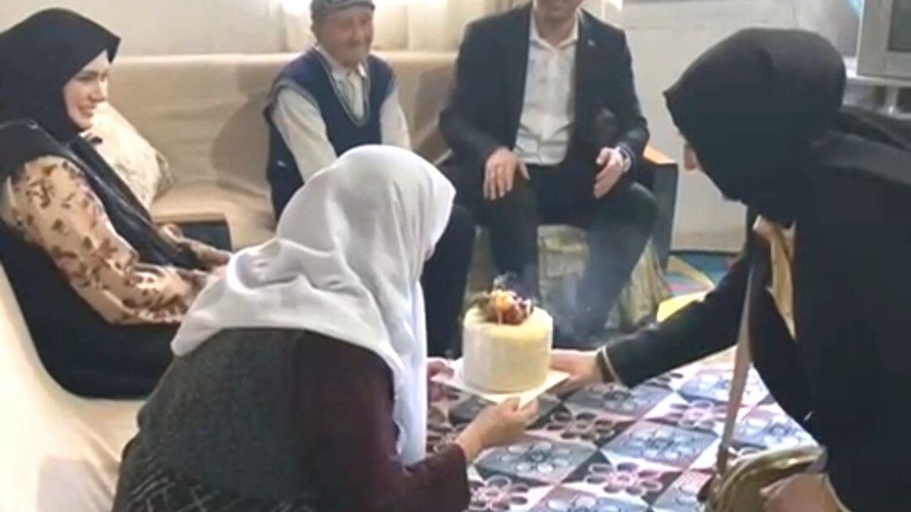 Kendisi için getirilen doğum günü pastasındaki mumları üfleyen 82 yaşındaki Hafize Karıştırıcı, "Çok memnun oldum. Sağ olun, Allah sizlerden razı olsun" dedi.