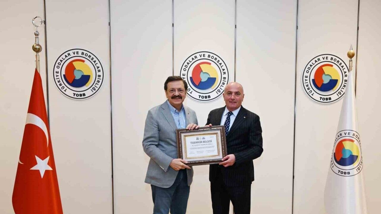 Erzurum Ticaret ve Sanayi Odası (ETSO) Yönetim Kurulu Başkanı ve TOBB Yönetim Kurulu Üyesi Saim Özakalın, Ekonomik İşbirliği Teşkilatı (EİT) ve Erzurum İl Koordinasyon Kurulu tarafından EİT 2025 Yılı Turizm Başkenti Erzurum’da gerçekleşen Palandöken Ekonomi Forumu’na (PEF) katkılar sunan Dünya Odalar Federasyonu ve TOBB Başkanı Rifat Hisarcıklıoğlu’na "Teşekkür Belgesi"ni takdim etti.