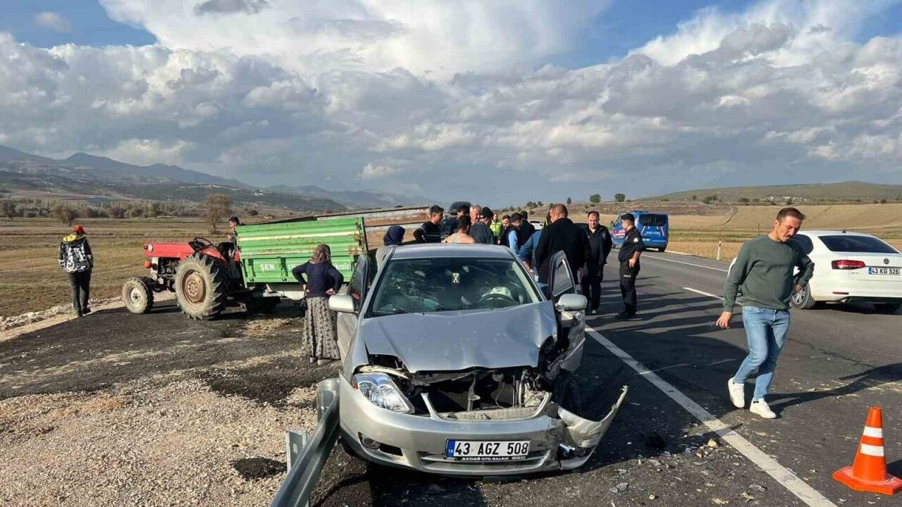 Edinilen bilgiye göre, M.Ö idaresindeki 43 AGZ 508 plakalı otomobil, Hisarcık-Emet karayolunun Kocaköprü girişinde, H.Ş’nin kullandığı 43 FF 210 plakalı traktör ile kafa kafaya çarpıştı. İhbar üzerine kaza mahalline sağlık ve polis ekipleri sevk edildi.