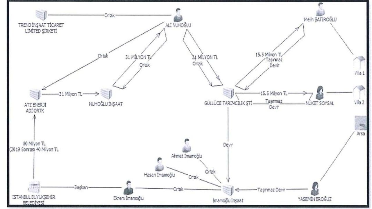Çalışmaların devamında ise aktarılan paraların yine Nuhoğlu tarafından verilen vekaletle Furkan Remzi Ceylan ve Nuhoğlu’nun şoförü M.G. tarafından bankadan nakit olarak çekildiği ve dövize çevrilerek çantaya konulduğu tespit edildi. Bankada dolara çevrilen söz konusu ihale tutarının aynı kişilerce el değiştirmesi, İBB Başkanı İmamoğlu’nun Ali Nuhoğlu’ndan Sarıyer Emirgan’da yaklaşık 1,5 milyar TL (50 milyon dolar) değerindeki 3 süper lüks villayı devraldığı tarihe denk gelmesi dikkat çekiyor.