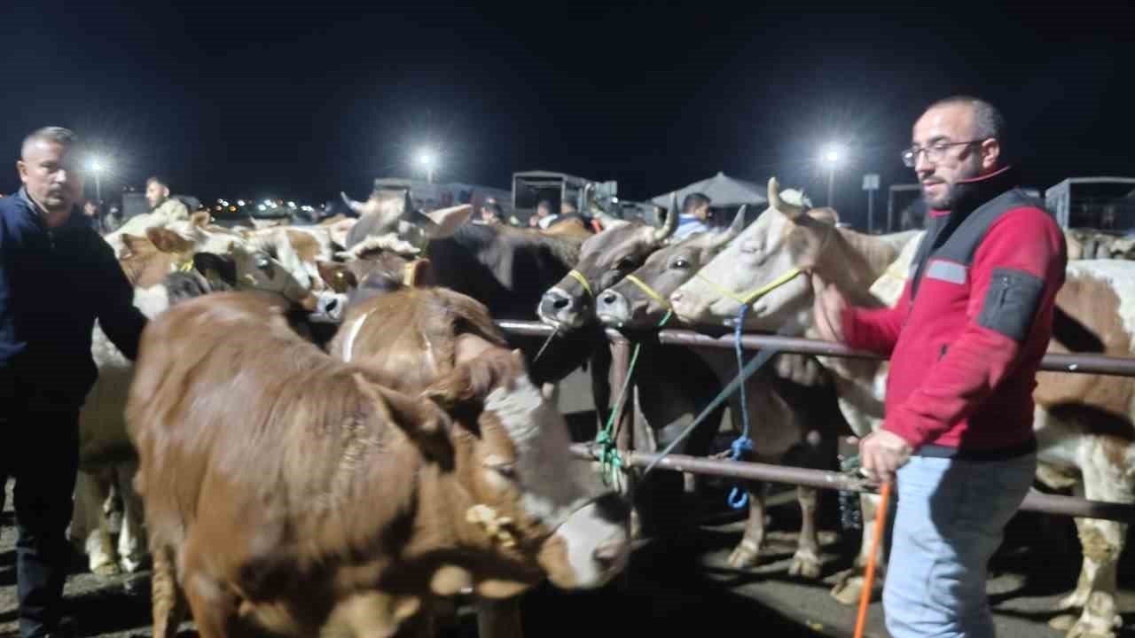 İç Anadolu Bölgesi'nin en büyüğü olan Şarkışla Hayvan Pazarı'nda Kurban Bayramı'nın yaklaşmasıyla yoğunluk arttı, alım satımlar gece de devam ediyor.
