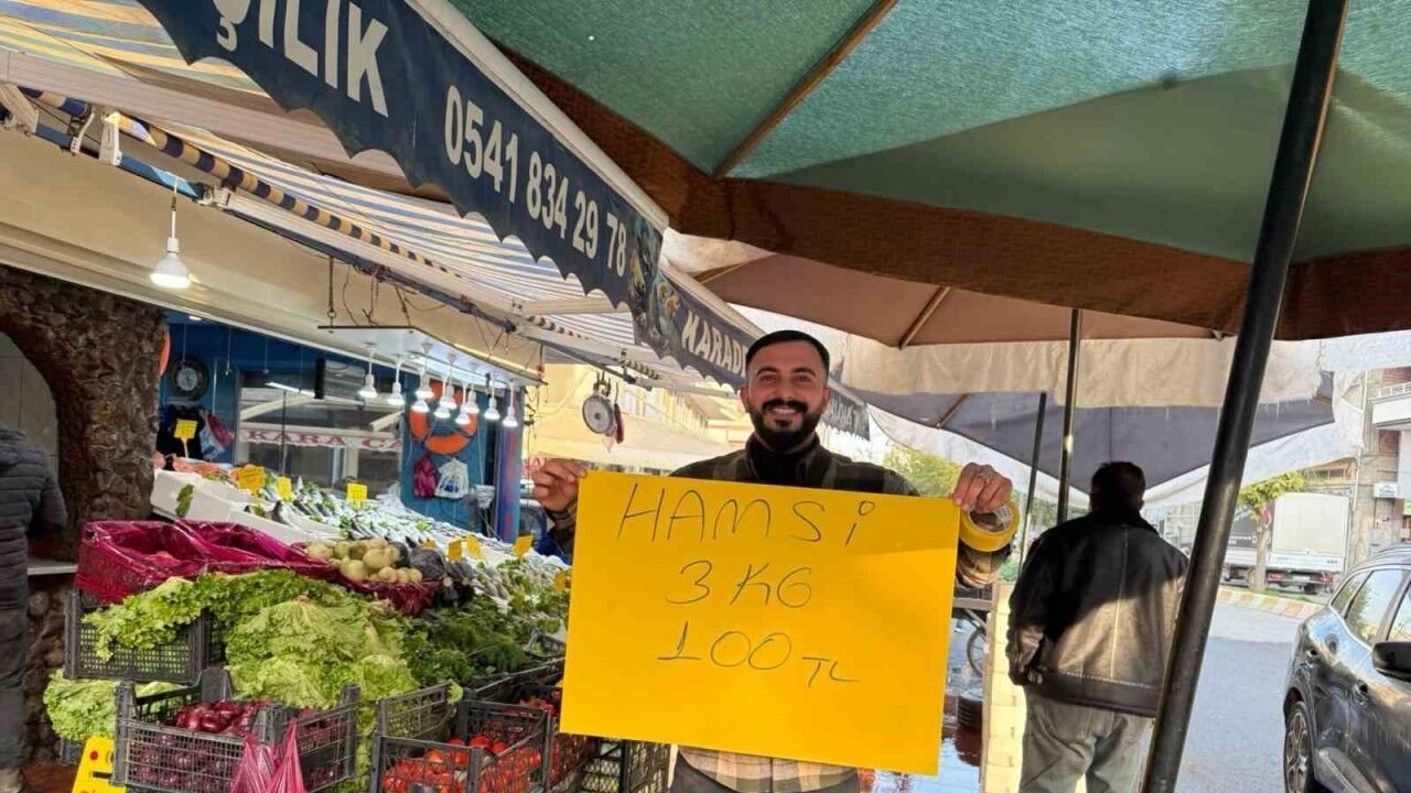 Iğdır’da bir balıkçı, 3 kilogram hamsinin fiyatını 100 liraya düşürdü. Uygulanan indirim sonrası vatandaşlar balıkçıya yoğun ilgi gösterdi. Gün boyunca iş yerinde 390 kasa hamsi satıldığı öğrenildi.