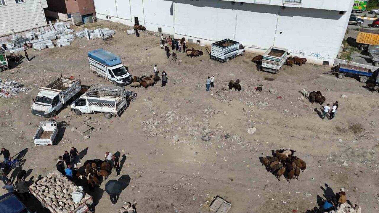 Kurban Bayramı’na saatler kala, Iğdır’da vatandaşların kurbanlık alma telaşı havadan görüntülendi.