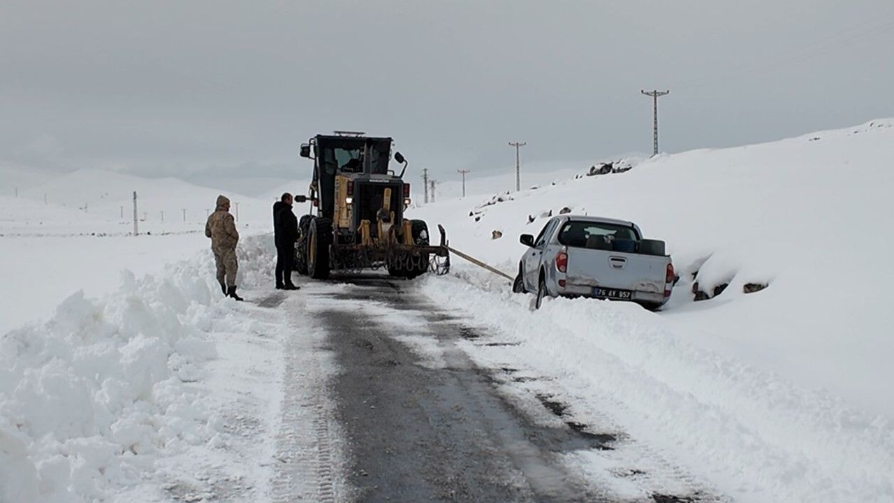 Iğdır'da etkili olan kar yağışı nedeniyle kapanan köy yollarını açmak için ekipler çalışmalarını sürdürüyor.