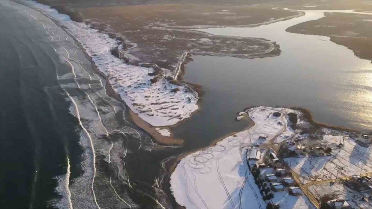 Kar yağışı sonrası özellikle Demirköy ilçesine bağlı İğneada beldesi sahil şeridinde oluşan eşsiz manzaralar, dron ile havadan görüntülendi. Beyaz örtüyle kaplanan sahil, dalgaların kıyıya vurmasıyla birlikte görsel şölen oluşturdu. Karla kaplı kumsal, ormanlık alanlar ve Karadeniz'in mavisi, havadan çekilen görüntülerde net bir şekilde gözler önüne serildi.