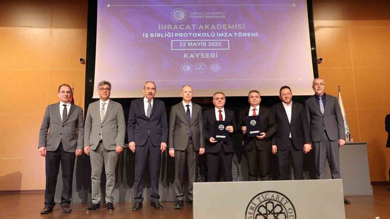 İş dünyasının ihracata yönelik ihtiyaç duyduğu nitelikli insan kaynağını yetiştirmek ve bu kaynağın ihracat alanında ülkemize katma değer sağlamasını temin etmek amacıyla hayata geçirilen ’İhracat Akademisi’, üniversiteler ile kurduğu iş birliği ağına bir yenisini daha ekledi. Erciyes Üniversitesi (ERÜ) ve İhracat Akademisi Eğitim Hizmetleri Anonim Şirketi arasında, Ticaret Bakanlığı ile Yükseköğrenim Kurulu koordinasyonunda hayata geçirilen ’İhracat Akademisi’ Projesi kapsamında iş birliği protokolü Kayseri Ticaret Odası’nda imzalandı. İş birliği protokol törenine; Ticaret Bakan Yardımcısı Özgür Volkan Ağar, Erciyes Üniversitesi Rektörü Prof. Dr. Fatih Altun, Ticaret Bakanlığı İhracat Genel Müdürü Mehmet Ali Kılıçkaya, Kayseri Ticaret Odası Yönetim Kurulu Başkanı Ömer Gülsoy, Ticaret Bakanlığı daire başkanları ve akademisyenler, STK Temsilcileri ve çok sayıda iş insanı katıldı. İş birliği ile kişilerin uluslararası ticaret alanında bilgi birikimlerinin artırılması, ihracat süreçlerine dair uygulamalı bilgiler edinmeleri ve küresel pazarda daha etkin bireyler olmaları hedefleniyor.