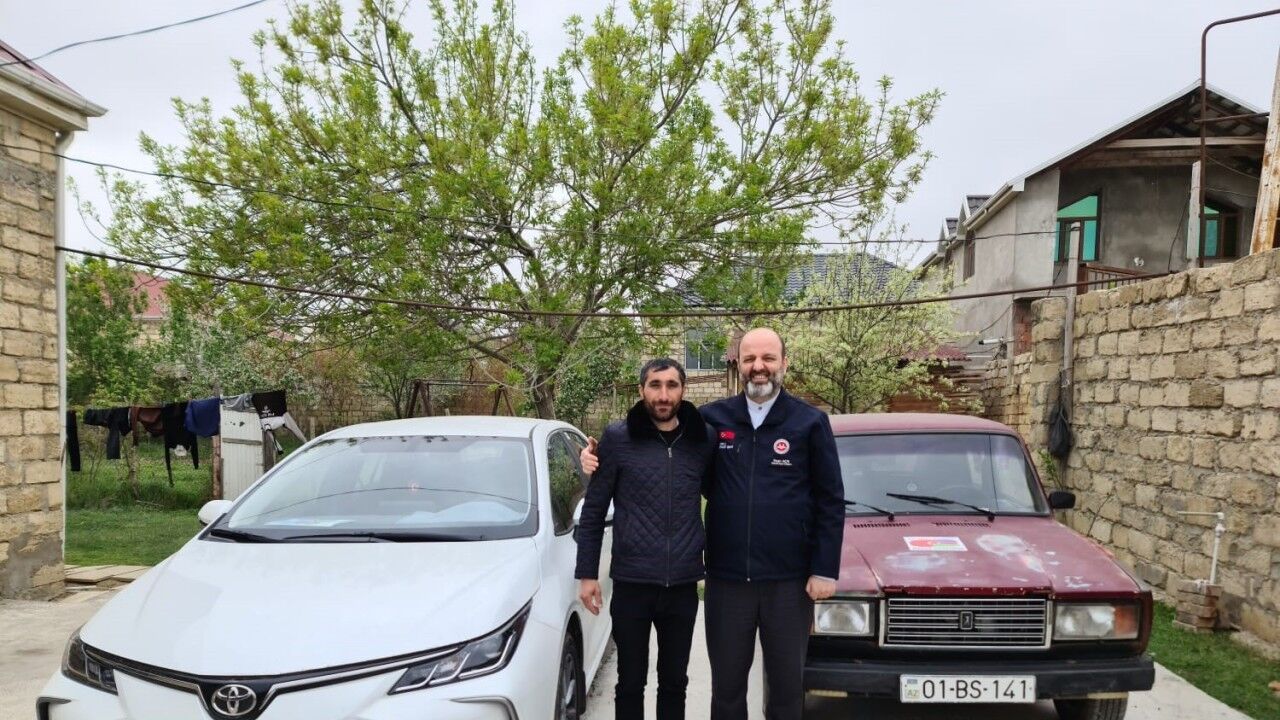 Azerbaycan’da eski model kırmızı bir aracın üzerine yüklediği yardım malzemelerini Türkiye’deki depremzedelere göndermek için yola çıktığı esnada çekilen bir fotoğraf ile depremin simgelerinden biri olan Server Beşirli’yi, Bakü Din Hizmetleri Müşaviri ve Türkiye Diyanet Vakfı Mütevelli Heyeti Üyesi İhsan Açık ziyaret etti.