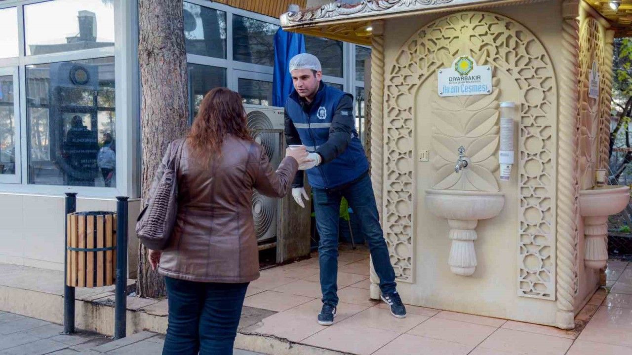 Diyarbakır Büyükşehir Belediyesinin kentteki 4 hastane ile Akademi Sur Etüt Merkezi önünde kurduğu ikram çeşmesinden hafta içi her gün bin 900 vatandaş yararlanıyor.