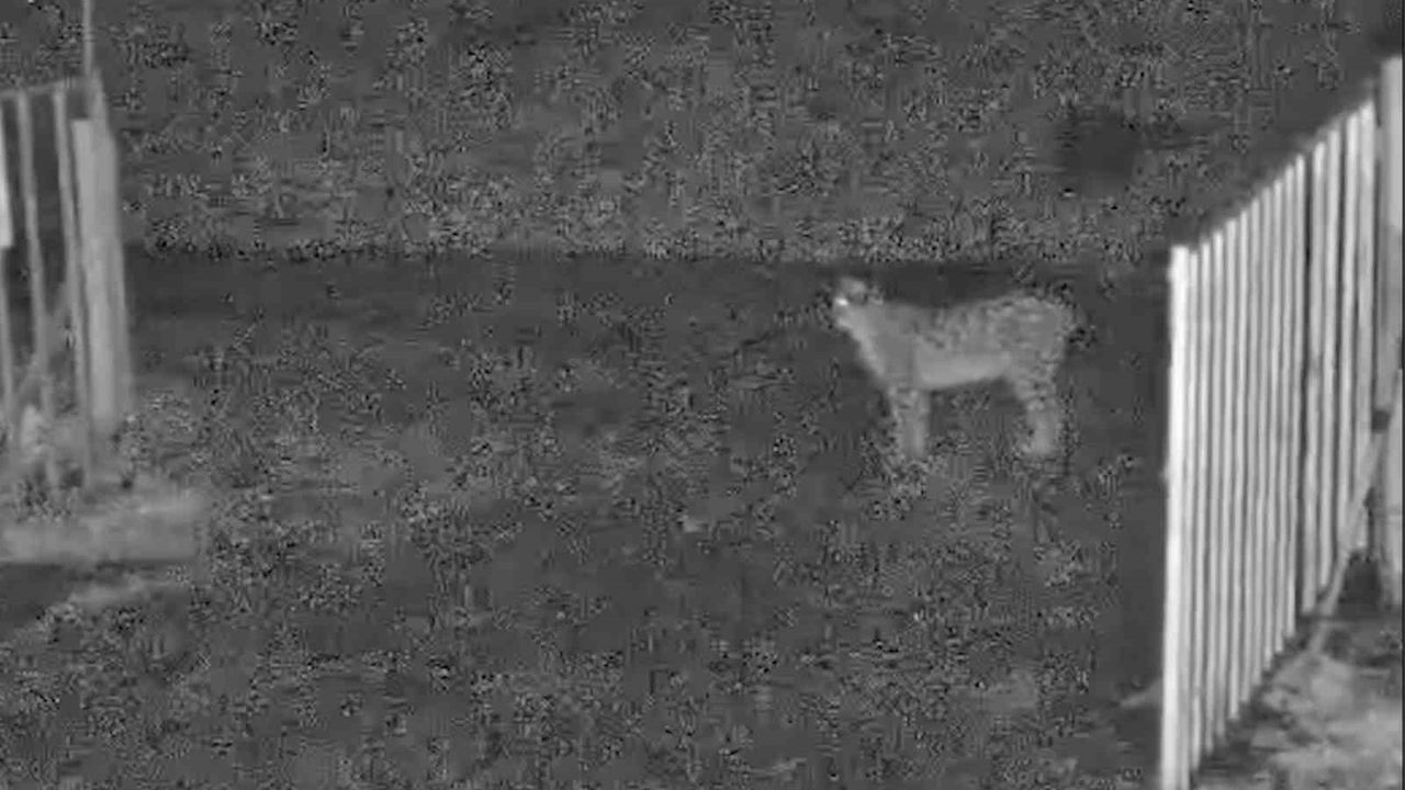 O anlar ise ilçedeki güvenlik kameralarına yasıdı. Görüntülerde, vaşağın yolda yürüdüğü ve daha sonra bir işletmenin bahçesine girdiği görülüyor. Farklı bir kameraya yansıyan görüntüde ise vaşak etrafı gözlemleyerek yürüyor.