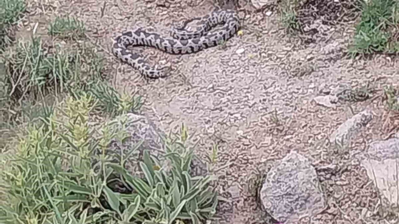 Afyonkarahisar’ın Şuhut ilçesinde görülen ve kuvvetli zehri ile bilinen engerek yılanı korkuya neden oldu.