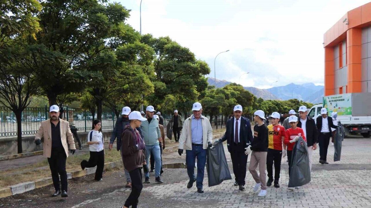 Erzurum’un Oltu ilçesinde farkındalık oluşturmak için çöp toplama etkinliği düzenlendi.