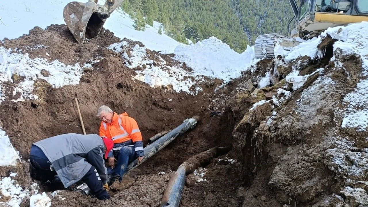 Ardahan’da Ilgar Dağı Geçidi’nde yapımı devam eden tünel inşaatında su borusu patladı. Ekipler boru hattını onarmak için çalışma başlattı.