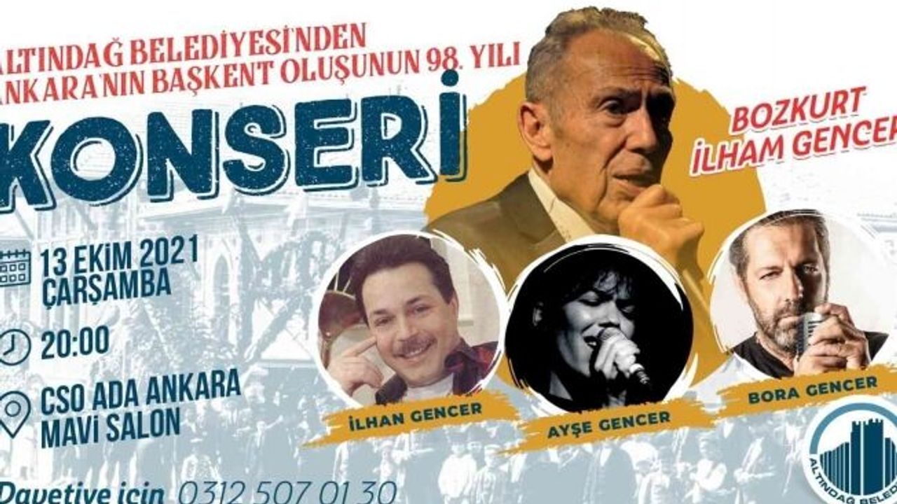 Altındağ Belediye Başkanı Doç. Dr. Asım Balcı’nın girişimleriyle, Ankara’da muhteşem bir konser gerçekleşecek. Ankara’nın başkent oluşunun 98’inci yıl coşkusu, Altındağ’dan tüm Ankara’ya yayılacak. Cumhurbaşkanlığı Senfoni Orkestrası Konser Salonu’nda gerçekleşecek olan etkinlikte, dünyaca ünlü caz sanatçısı Bozkurt İlham Gencer ve çocukları sahne alacak. Baba Gencer, oğulları İlhan ve Bora Gencer ile kızı Ayşe Gencer, ilk kez bu konserde aynı sahnede bir araya gelecek.