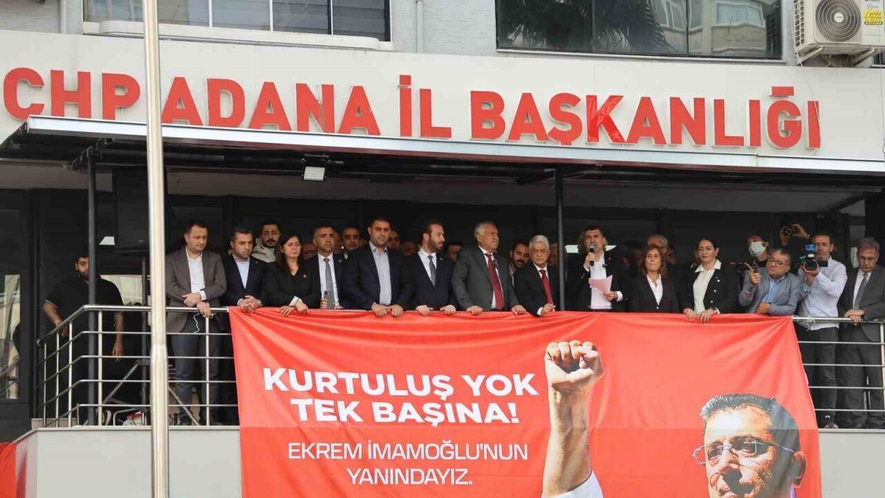 CHP Adana İl Başkanlığı, İstanbul Büyükşehir Belediye Başkanı Ekrem İmamoğlu’nun gözaltına alınmasının ardından basın açıklaması düzenledi.