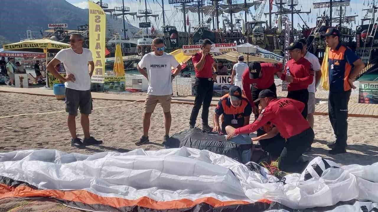 Muğla’nın Fethiye ilçesinde Belcekız plajına sert iniş yaparak yaralanan İngiliz paraşütçünün yardımına jandarma ekipleri yetişti.