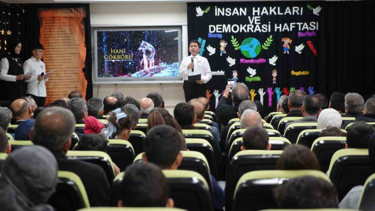 Bayburt’ta İnsan Hakları ve Demokrasi Haftası dolayısıyla Şehit Sebahattin Bozo Ortaokulu tarafından düzenlenen programda, Filistin ve Doğu Türkistan’da yaşanan insan hakları ihlallerine dikkat çekildi. Program, davetliler tarafından ilgiyle takip edildi.
