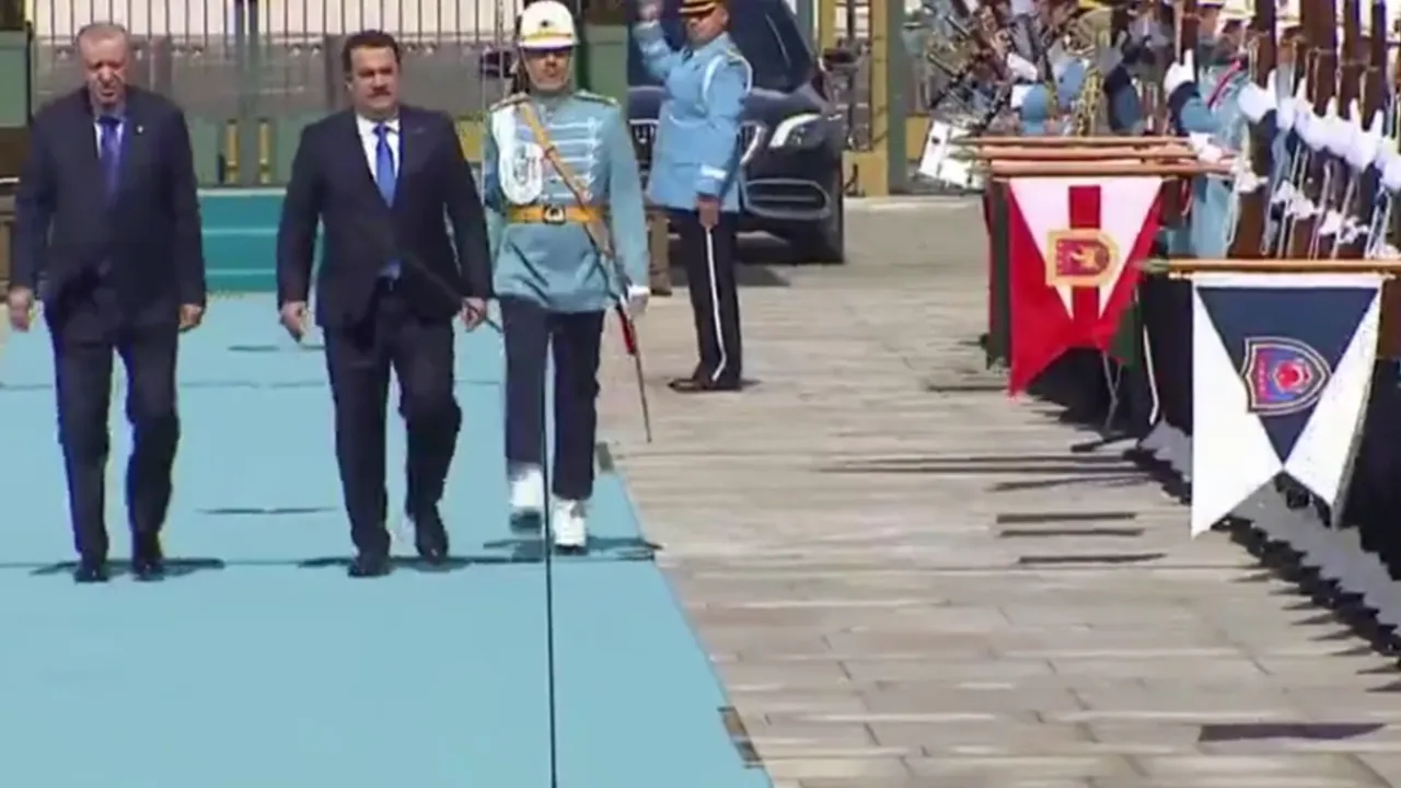 Törende, tarihte kurulan 16 Türk devletini temsil eden bayraklar ve askerler yer aldı, top atışı yapıldı. Erdoğan ve Sudani, iki ülke bayrakları önünde tokalaşarak basın mensuplarına poz verdi. İkili, daha sonra heyetler arası görüşmelere geçti.