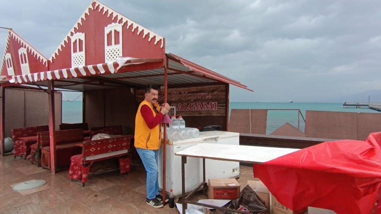Hatay'da etkili olan fırtına İskenderun Belediyesi'nin Ramazan ayı için kurduğu çadırlarını denize uçurdu. Vatandaşların çadırlar uçmasın diye verdiği mücadele ise kameraya yansıdı.