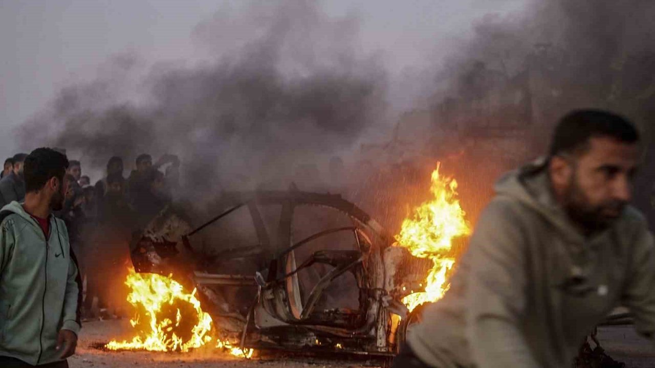Saldırıda hedef alınan aracın enkazının görüntüleri ise bölge halkının kameralarına yansıdı.