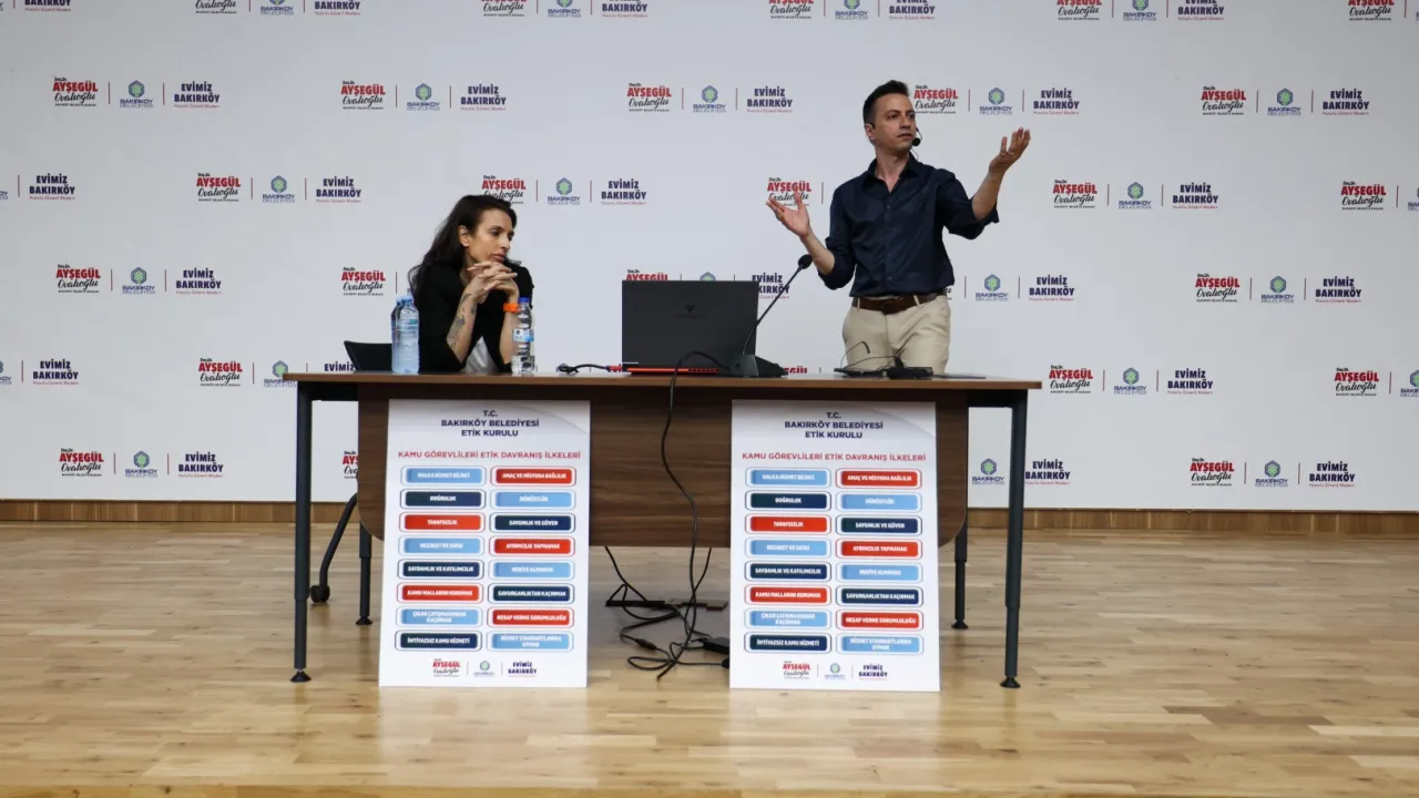 İstanbul Bakırköy Belediyesi Etik Kurulu’nun konferans salonunda düzenlediği toplantıda, “Kamu Görevlileri Etik Davranış İlkeleri” değerlendirildi. Belediye çalışanlarının katıldığı programda; halka hizmet bilinci, amaç ve misyona bağlılık, doğruluk, dürüstlük, tarafsızlık, saygınlık ve güven, nezaket ve saygı, ayrımcılık yapmamak, saydamlık ve katılımcılık, hediye almamak, kamu mallarını korumak, savurganlıktan kaçmak, çıkar çatışmasından kaçmak, hesap verme sorumluluğu, imtiyazsız kamu hizmeti ve hizmet standartlarına uymak konuları üzerine konuşuldu.