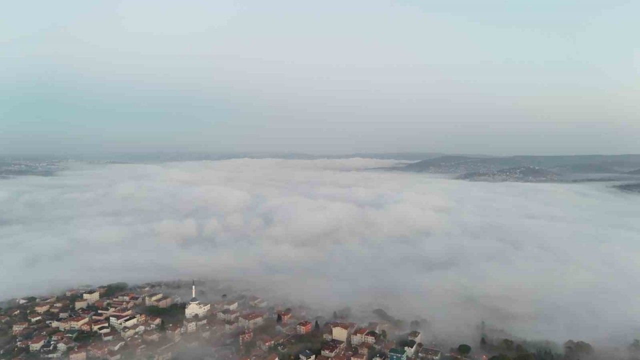 İstanbul’da sabah saatlerinde etkisini artıran sis, özellikle Boğaz hattına yoğun şekilde hakim oldu. Şehrin iki yakası adeta sis bulutları arasında kaybolurken, görüş mesafesi ise hem kara hem de deniz trafiğinde büyük ölçüde azaldı. Şehrin birçok noktasında etkili olan sis bulutları nedeniyle kıyı şeridinde siluetler görünmez hâle geldi. Yoğun sis sabah saatlerinden itibaren yer yer etkisini sürdürürken, havadan dron ile çekilen görüntüler ise İstanbul Boğazı’nda kartpostallık manzaralar oluşturdu.