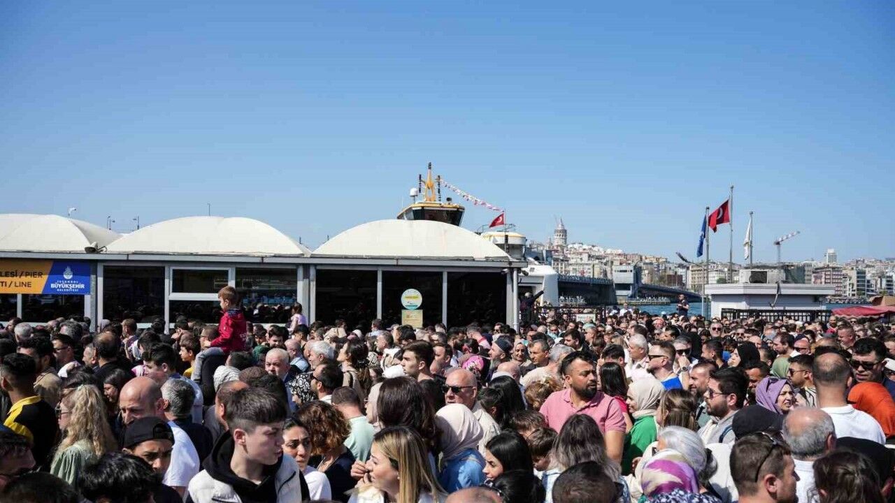 İstanbul’da Ramazan Bayramı’nın son gününde güneşli havayı fırsat bilen vatandaşlar, Eminönü’nde yoğunluk oluşturdu. İnsan selinin oluştuğu o anlar fotoğraflara yansıdı.
